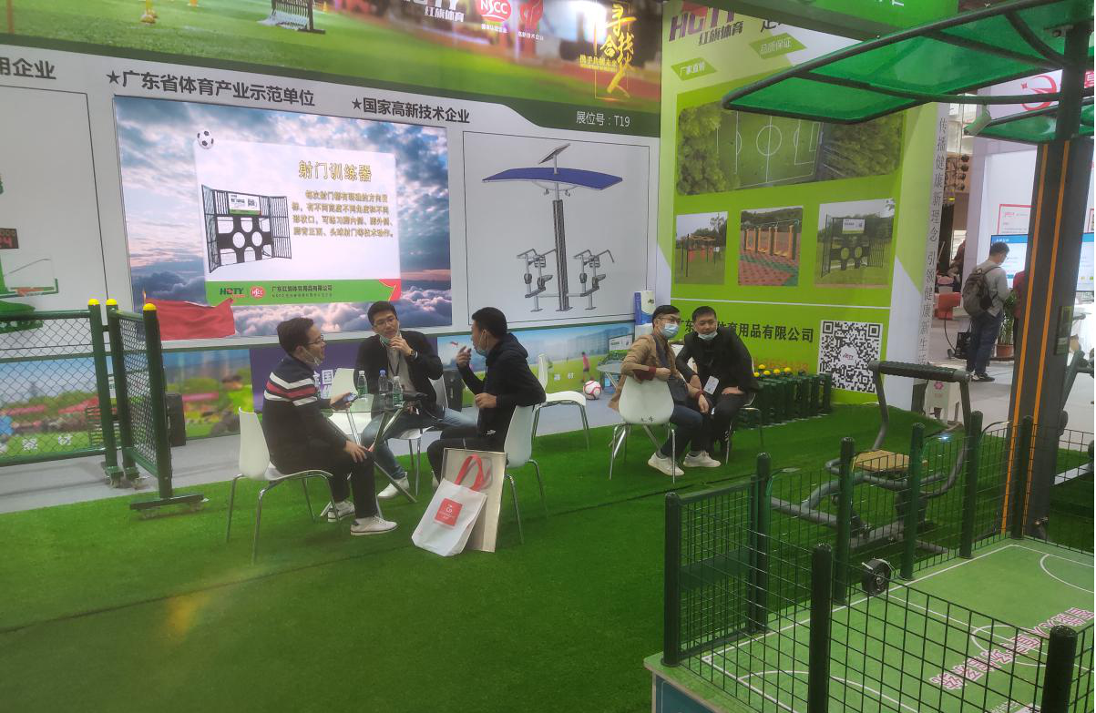 在本次展會(huì)上,作為國(guó)家高新技術(shù)企業(yè)、廣東省體育產(chǎn)業(yè)示范單位的廣東紅旗體育用品有限公司,攜帶了一批近期研發(fā)生產(chǎn)的新產(chǎn)品作為體博會(huì)的獻(xiàn)禮,展出了足球訓(xùn)練器材、移動(dòng)式拼裝圍網(wǎng)、全電動(dòng)移動(dòng)籃球架、智能二代健身路徑、智能無(wú)人值守球場(chǎng)系統(tǒng)等一系列智慧新產(chǎn)品。